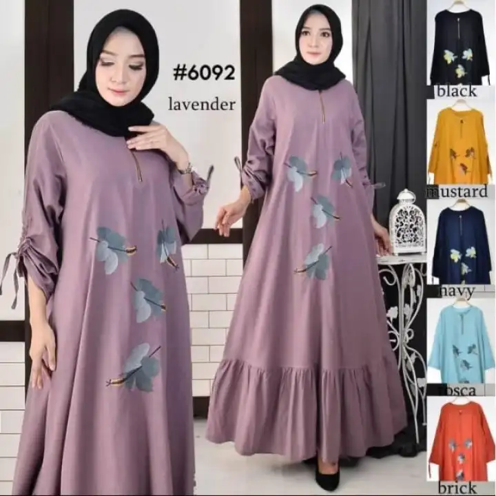 Gamis Long Dress Maxi Wanita Muslim Ld 120 Gamis Jumbo Bunga Linen Lazada Indonesia