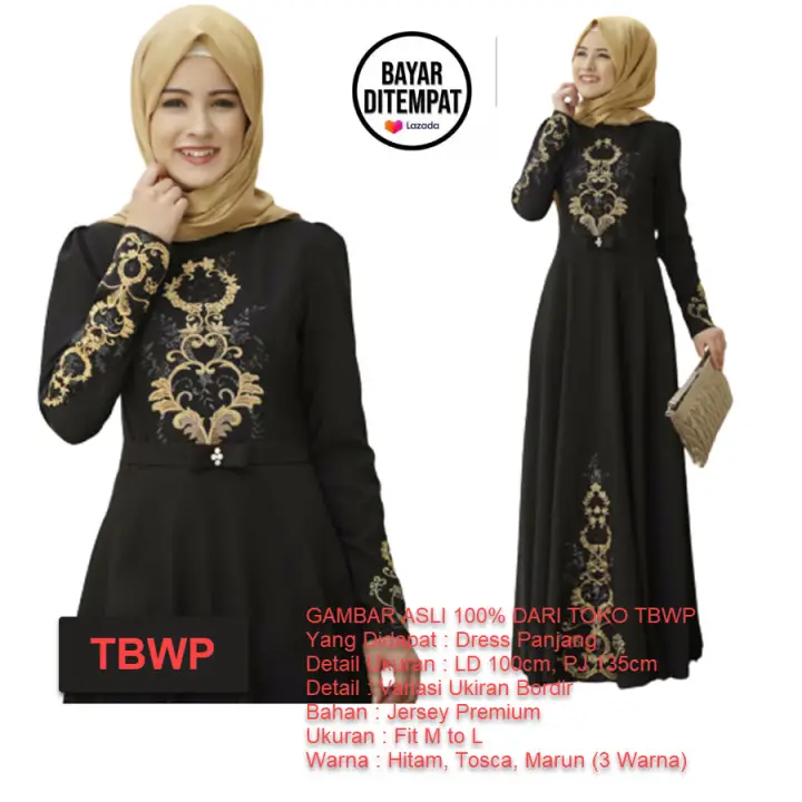 Tbwp Dress Bordir Model Baru Muslim Gamis Wanita Dress Terusan Maxi Modis Gamis Lebaran 2021 Setelan