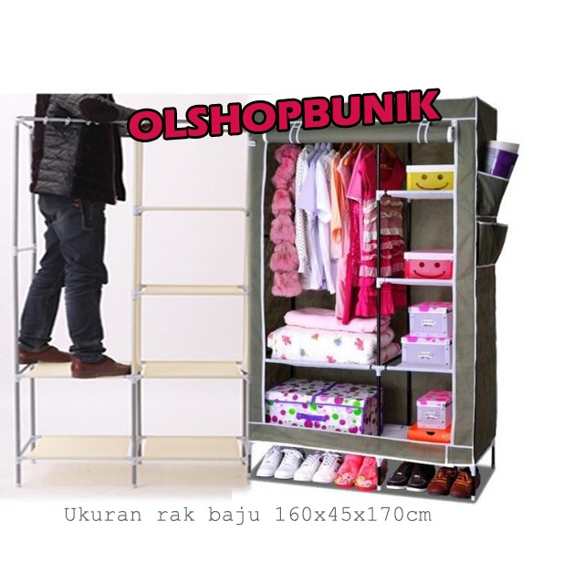 Rak Baju Portable 3 Pintu Lemari Pakaian Multifungsi Rak Terbaru Murah Shopee Indonesia