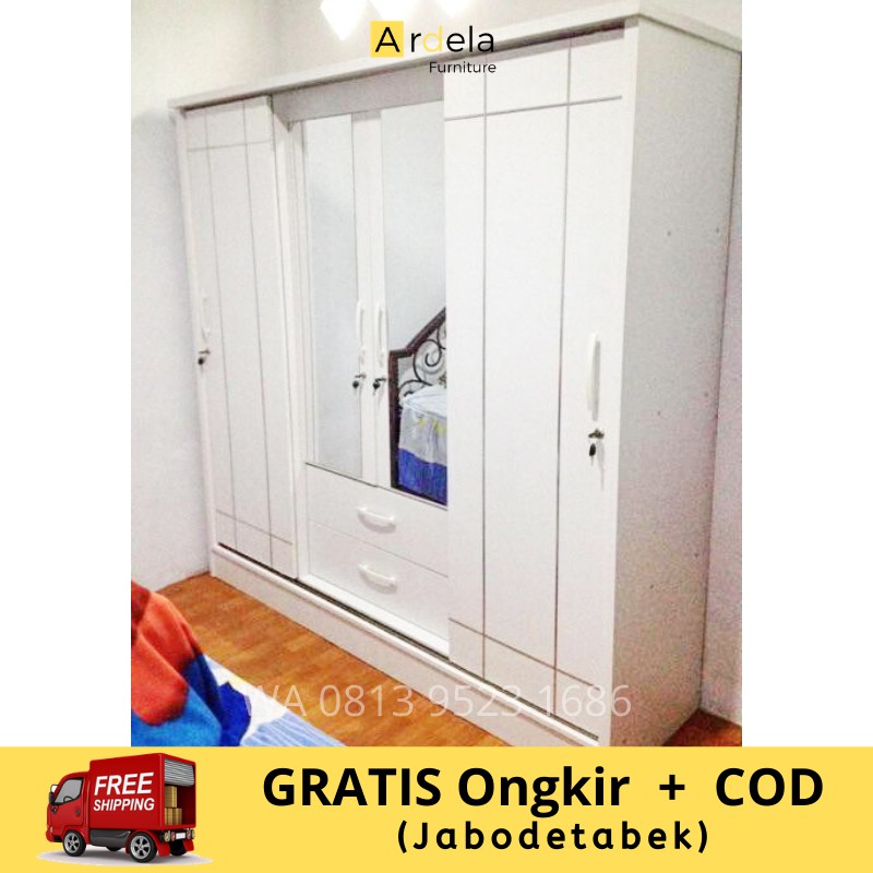 Lemari Kayu Jati Pintu 4 Sleding Lemari Pakaian Murah Lemari Kayu Jati Bagus Lemari Pakaian Kayu Shopee Indonesia