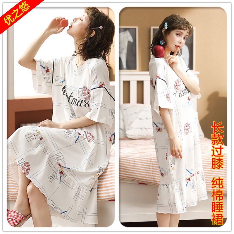 Baju Tidur Pyjamas Baju Perempuan Piyama Wanita Musim Panas Kapas Murni Nipis Lengan Pendek Sutera Ais Sutra 2020 Rok Piyama Baru Bergaya Musim Panas Shopee Malaysia