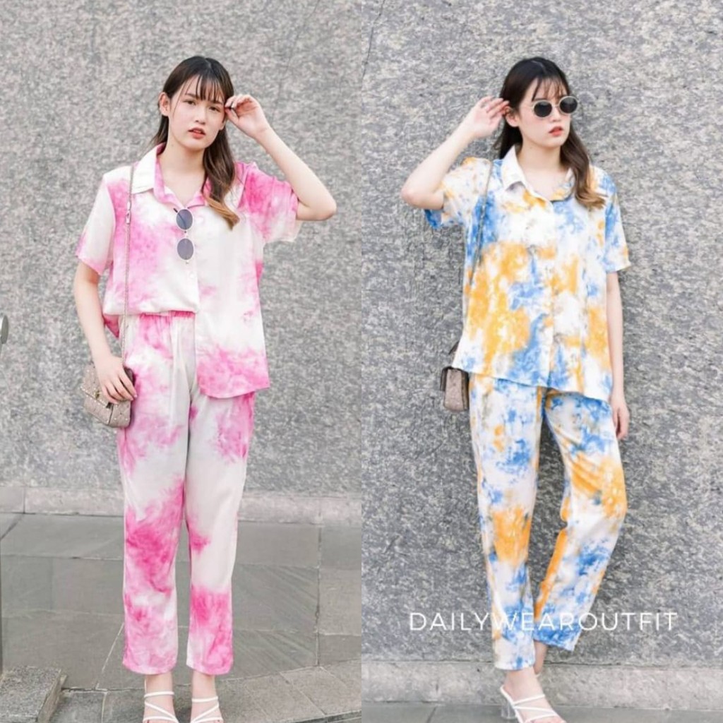 Setelan Baju Dan Celana Wanita Motif Tie Dye Lengan Pendek Ootd Kekinian 2020 Lazada Indonesia