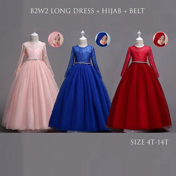 Import Bw27 Long Dress Panjang Gamis Pesta Anak Muslim Hijab Merah Marun Biru Elektrik Shopee Indonesia
