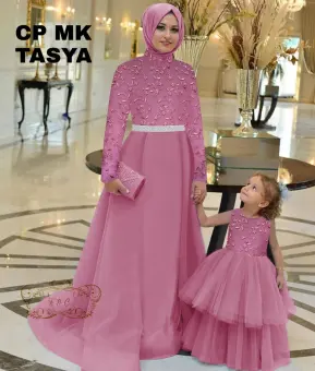 Ema Shope Baju Couple Ibu Anak Muslimah Gamis Duyung Brukat Tile Mutiara Mewah Long Dress