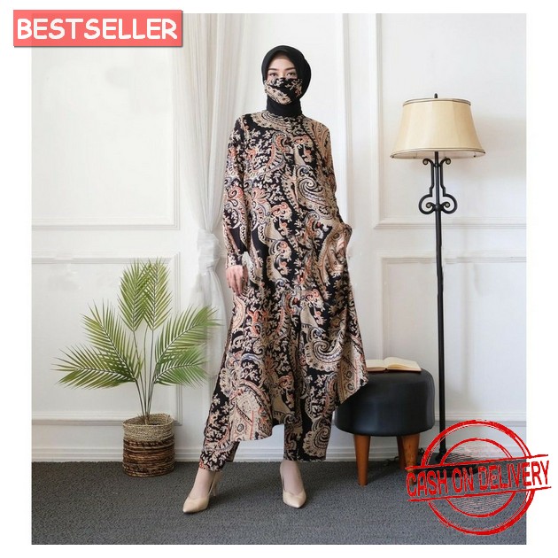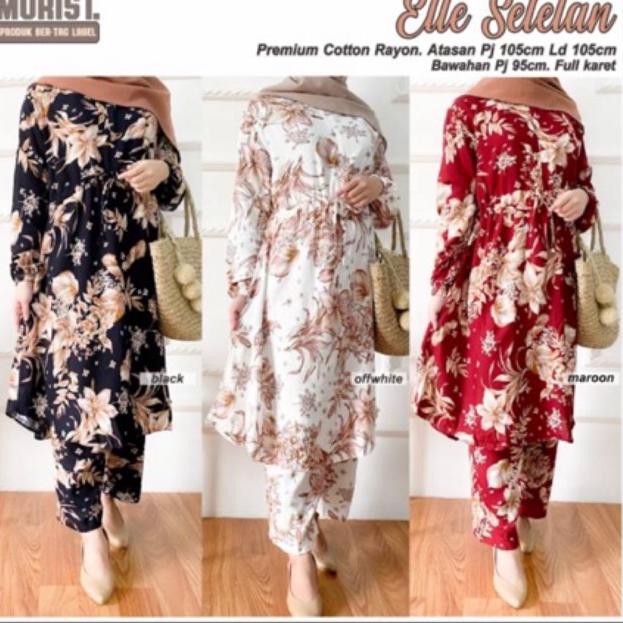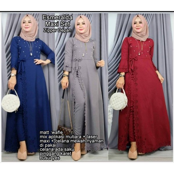 Ema Shope Stelan Baju Tunik Celana Wanita Muslimah Gamis Brukat Mewah Long Tunik Fashionable Celana