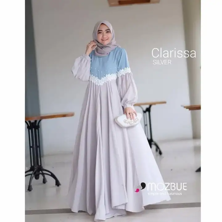 New Clarissa Dress Bahan Moscrepe Aplikasi Renda Mutiara Gamis Simple Model Trendy Terbaru Gamis Wanita Dress