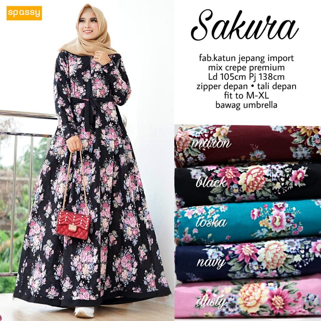 30 Model Gamis Bunga2 Katun Jepang Fashion Modern Dan Terbaru 2021