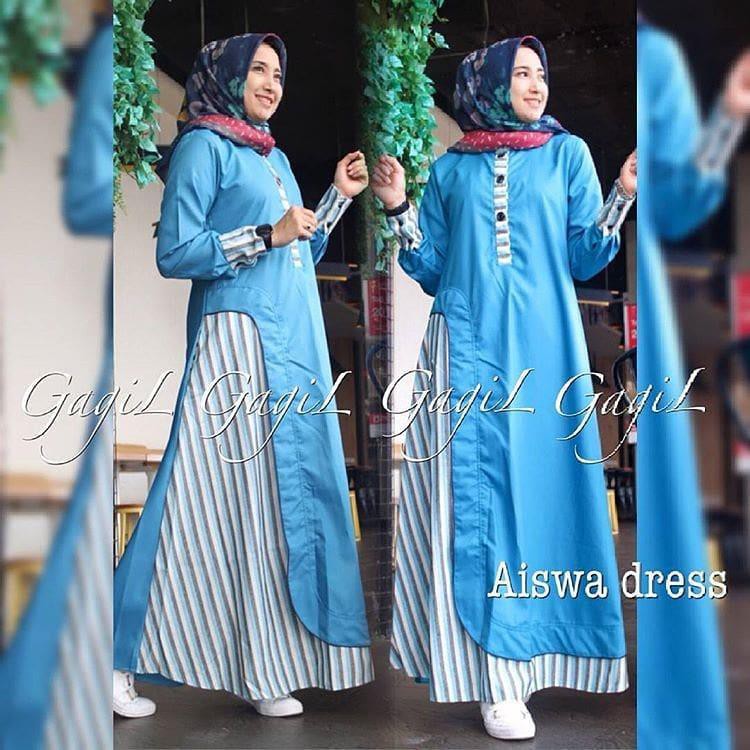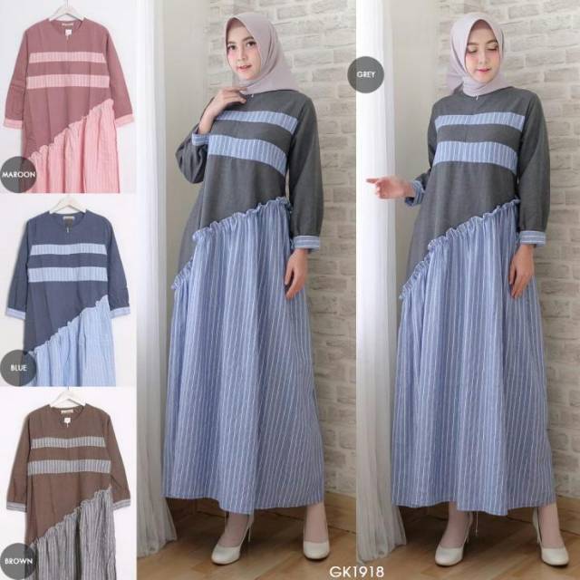 Model Gamis Garis Kombinasi Polos Model Gamis 2019