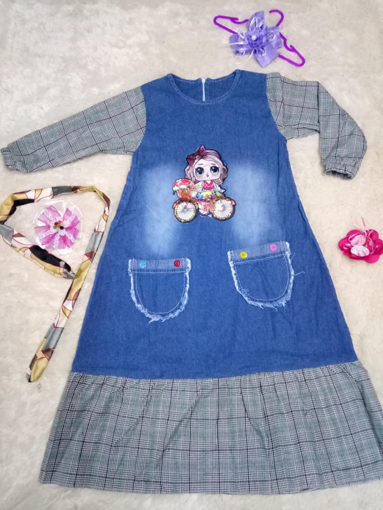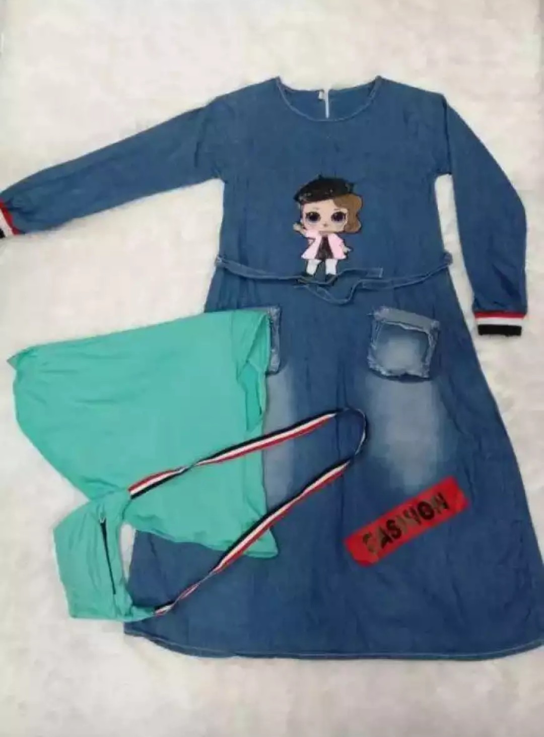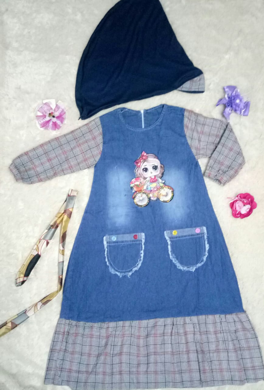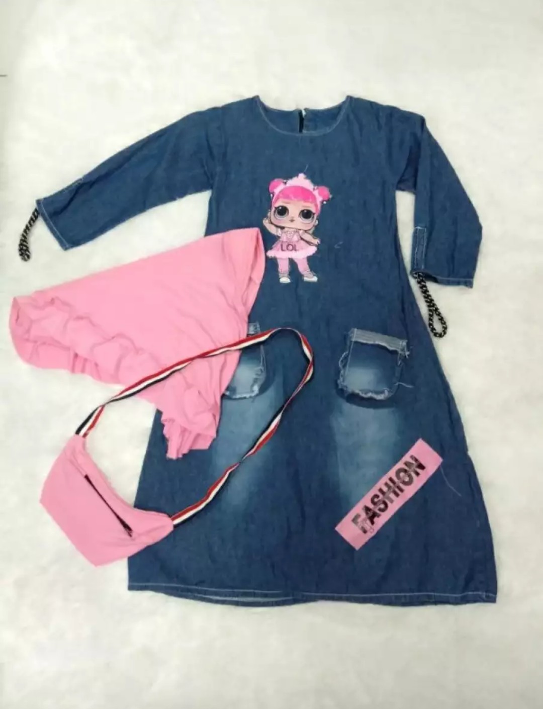 Gamis Jeans Anak Lol Gamis Jeans Anak Perempuan Umur 2 10 Tahun Plus Kerudung Dan Tas Cantik Dress Jeans Anak Lol Lazada Indonesia