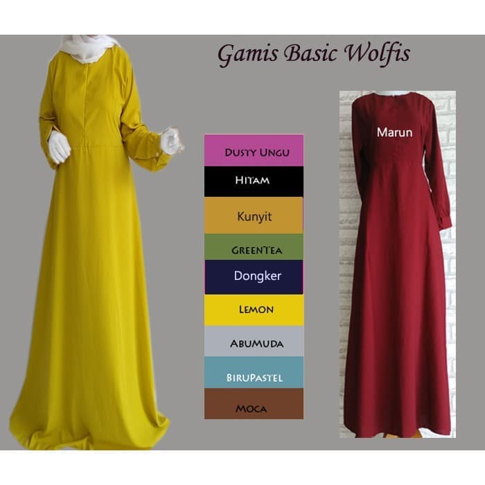 Model Baju Gamis Wolfis Polos Baju Terusan Panjang Baju Muslim Busana Islami