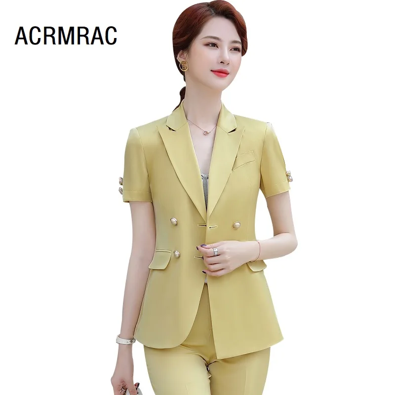 Pakaian Wanita Slim Musim Panas Lengan Pendek Blazer Celana Kantor Formal Pakaian Kerja Wanita Setelan Celana Wanita Set Setelan 2022 Celana Sesuai Dengan Aliexpress