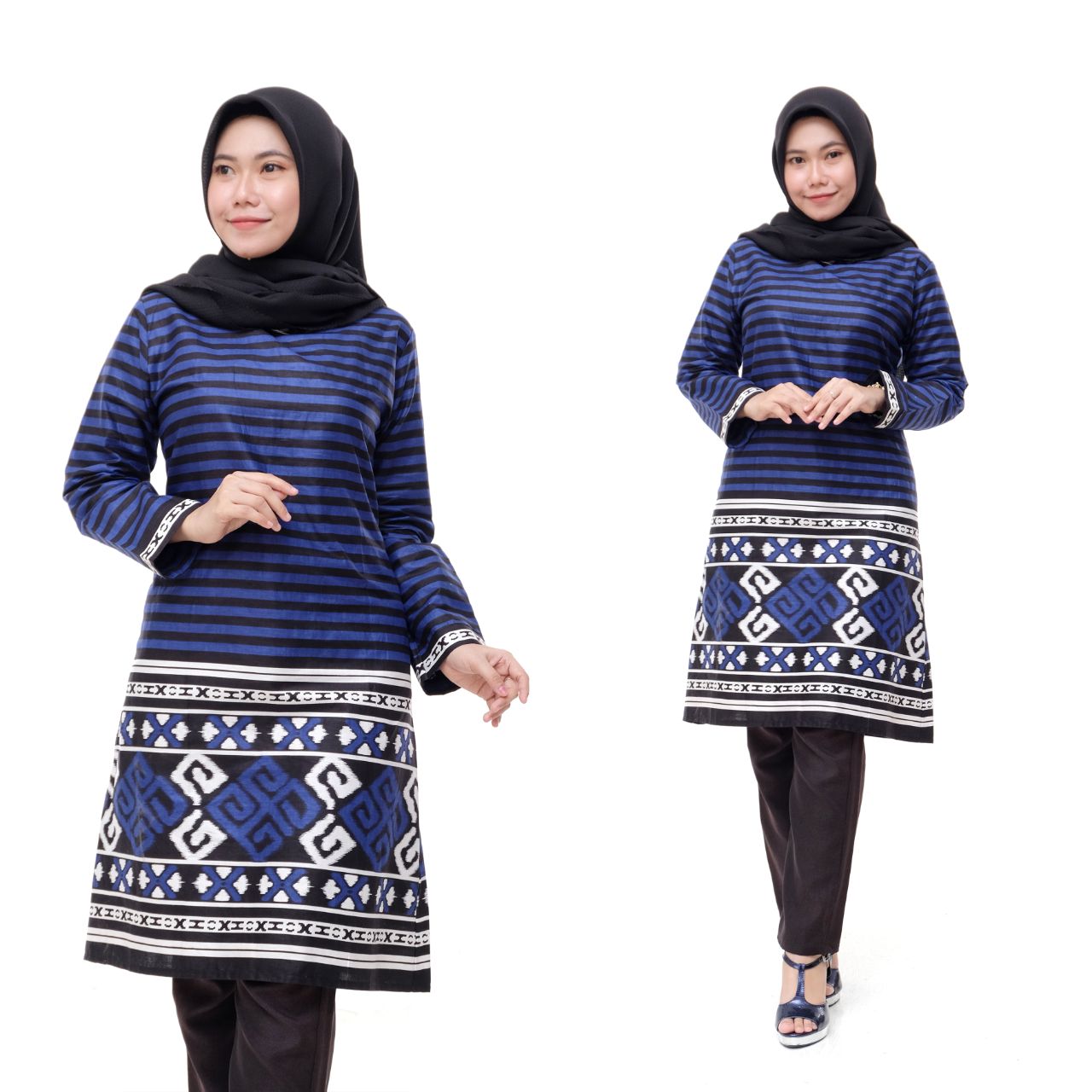 Baju Batik Wanita Atasan Tunik Batik Pekalongan Murah Lengan Panjang Motif Songket Lurik Biru Blue Katun Adem New Modern Seragam Pesta Resespsi Kantor Kerja Dinas Keren Batikpanjikhamim Store Lazada Indonesia