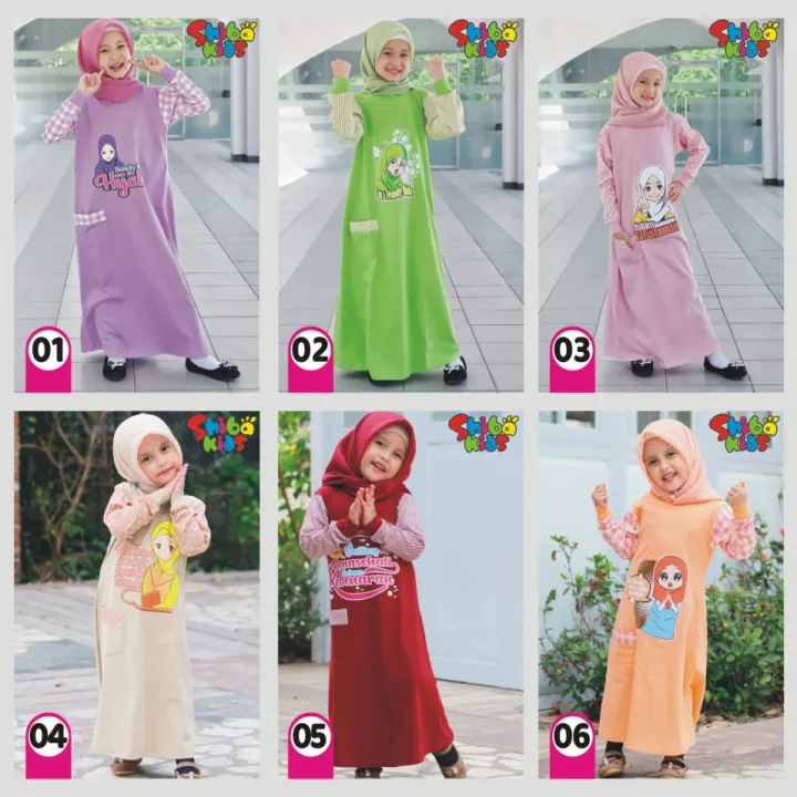 Baju Muslim Gamis Anak Perempuan Usia 4 6 Tahun Bahan Kaos Motif Cantik Terbaru Murah Shopee Indonesia