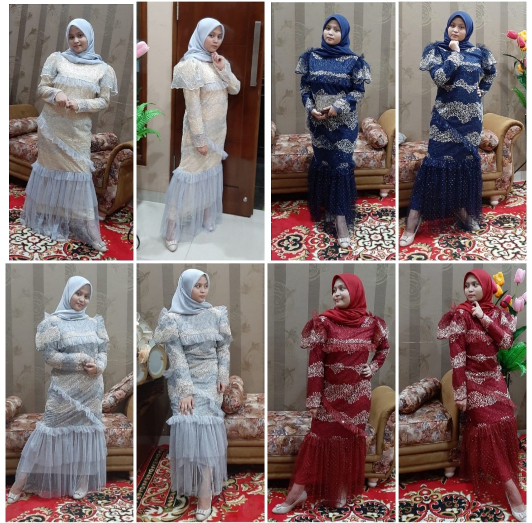 Baju Gamis Wanita Terbaru Model Pesta Kekinian Jaguar Gliter Kombinasi Tile Brokat Polos Sherina Maxi Ld105 Busui Size L Syar I Lazada Indonesia
