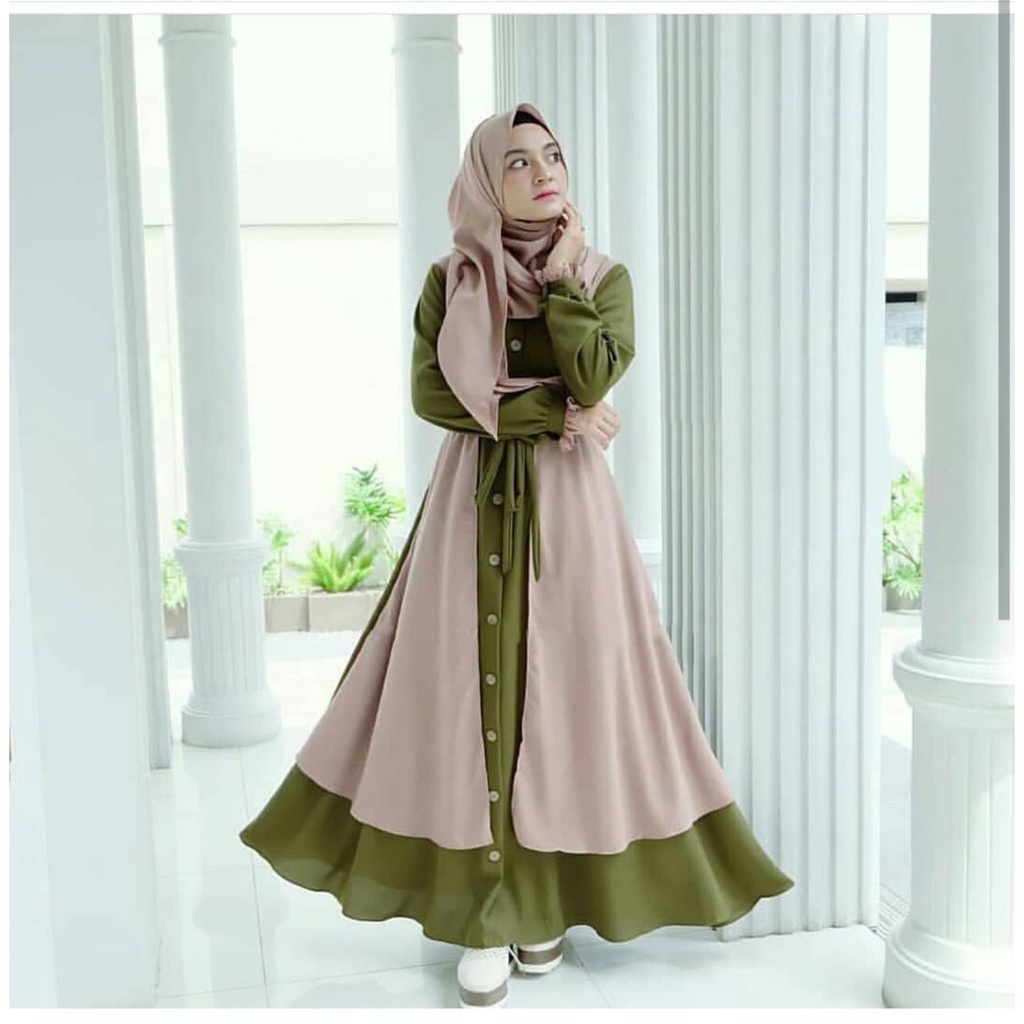 Jual Baju Gamis Muslim Terbaru Farani Dress Bahan Moscrepe Mix Supernova Muslimodis Net