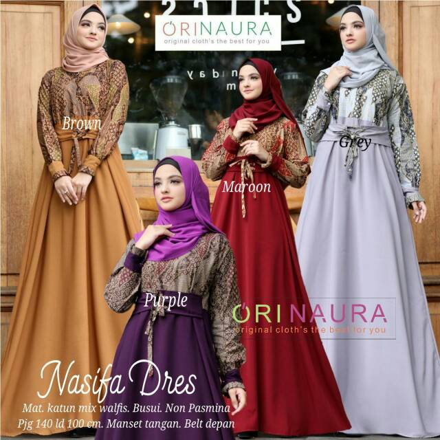 Salisa Dress By Lilgorgeous Bahan Moss Crepe Polos Kombinasi Bahan Wolfis Motif Bunga Dan Variasi Lis Tanpa Model Pakaian Hijab Pakaian Wanita Model Pakaian