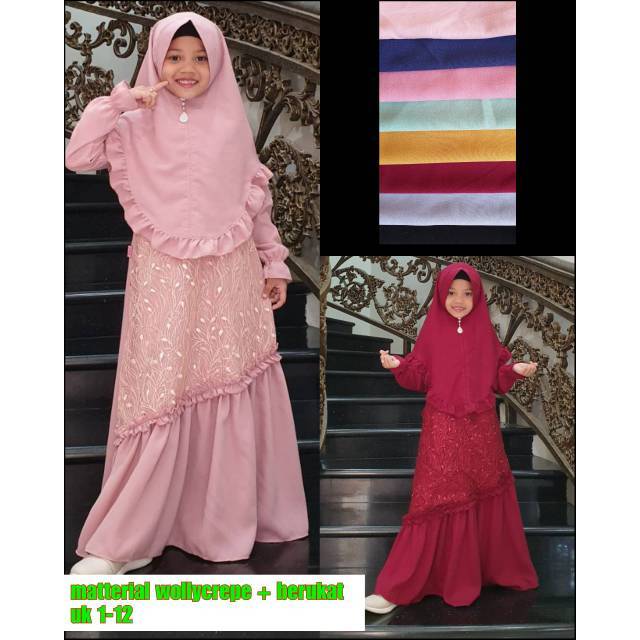 Gamis Anak Brokat Plus Jilbab Untuk Lebaran Lazada Indonesia