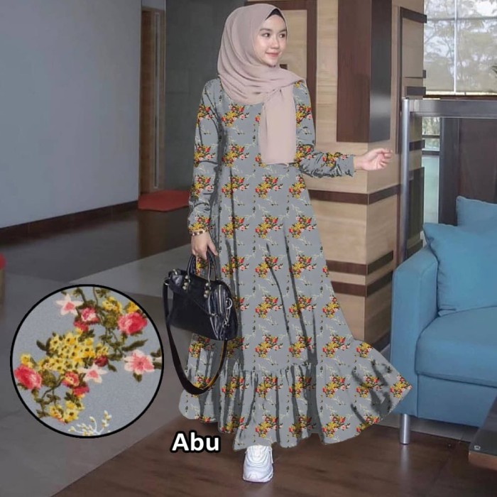 32 Model Baju Gamis Motif Bunga Modern 2020 Muda Co Id