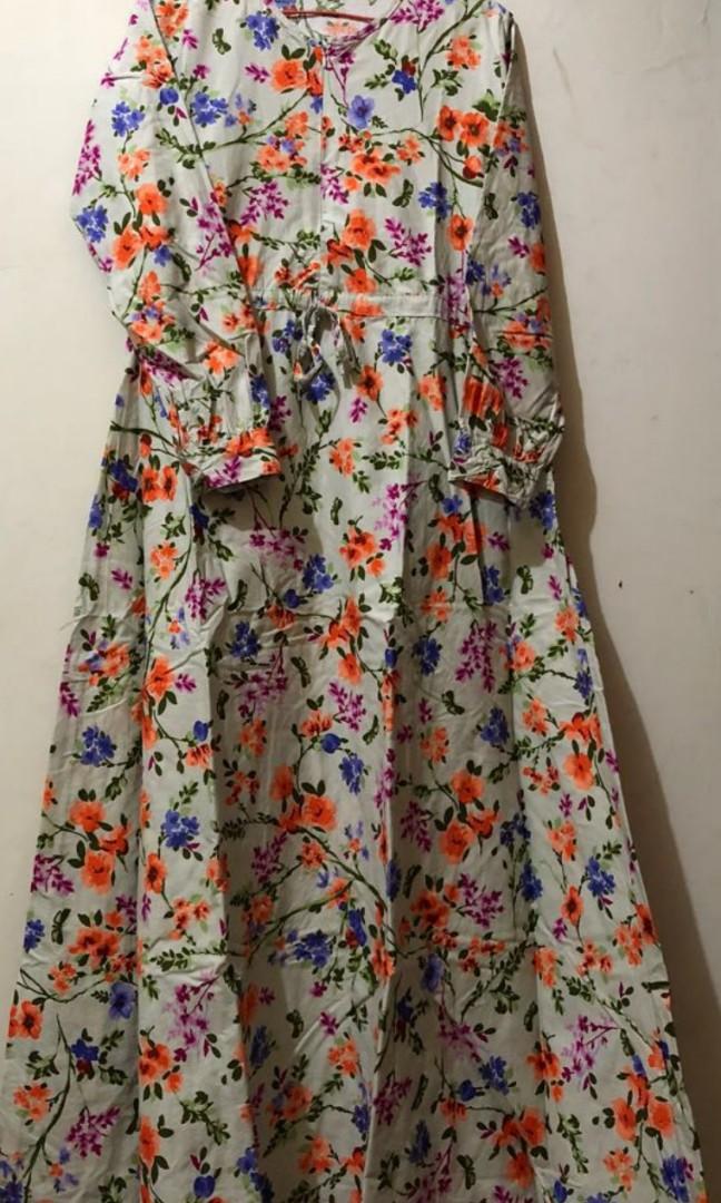 Model Gamis Katun Jepang Motif Bunga G1095 Cantik Edisi November 2016 2017 Gaun Model Pakaian Model