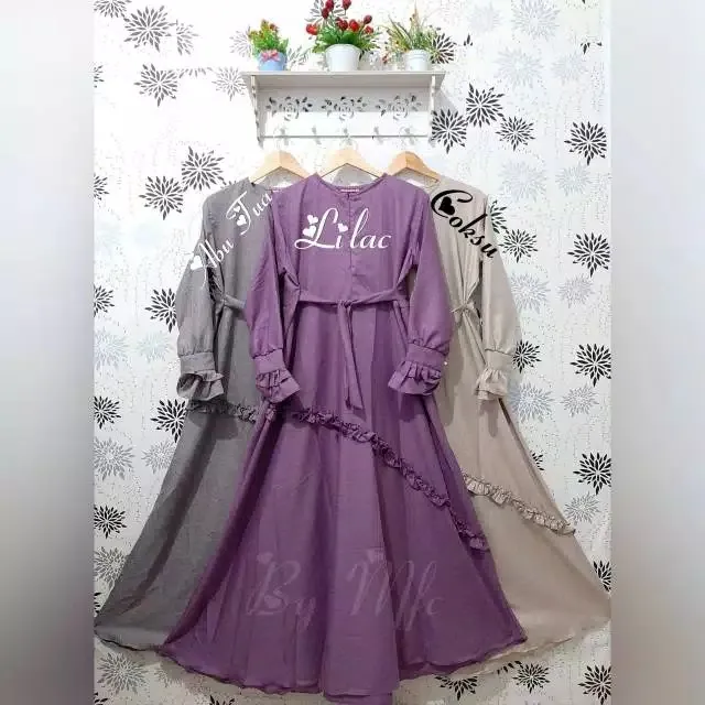 Gamis Lebaran 2020 Model Pesta Fashion Wanita Terbaru Syari Motek Ua790 Katun Madina Rempel Depan Shopee Indonesia