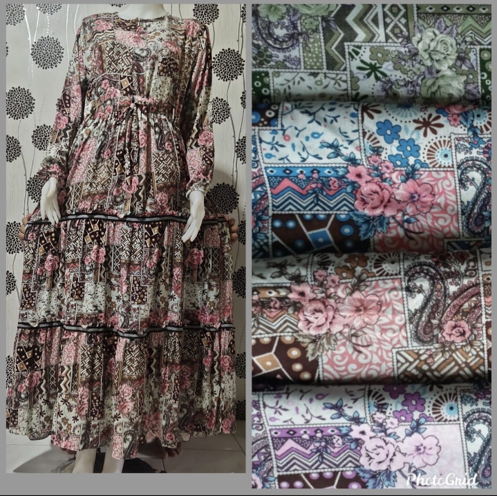 Dress Hijab Wanita Bahan Katun Rayon Viscose Motif Bunga Terbaru Gamis Rayon Murah Terlaris Shopee Indonesia