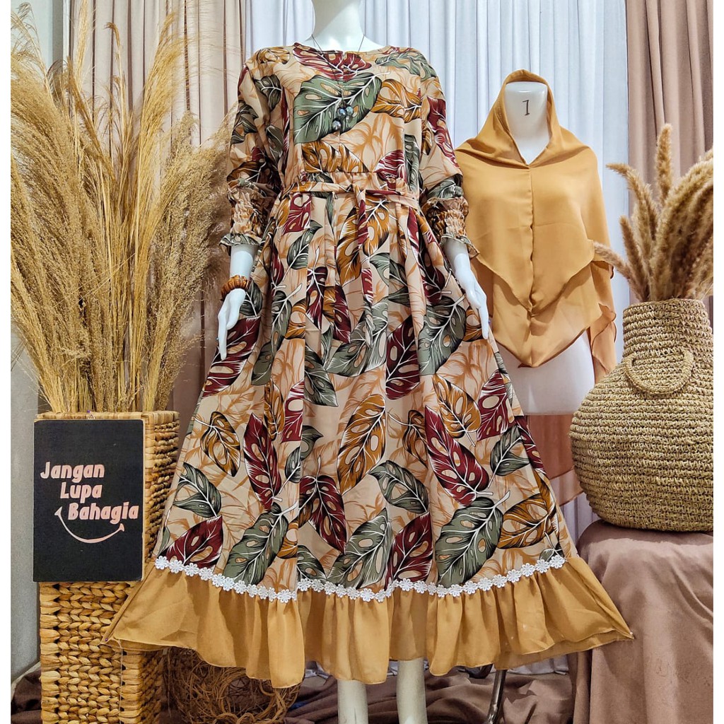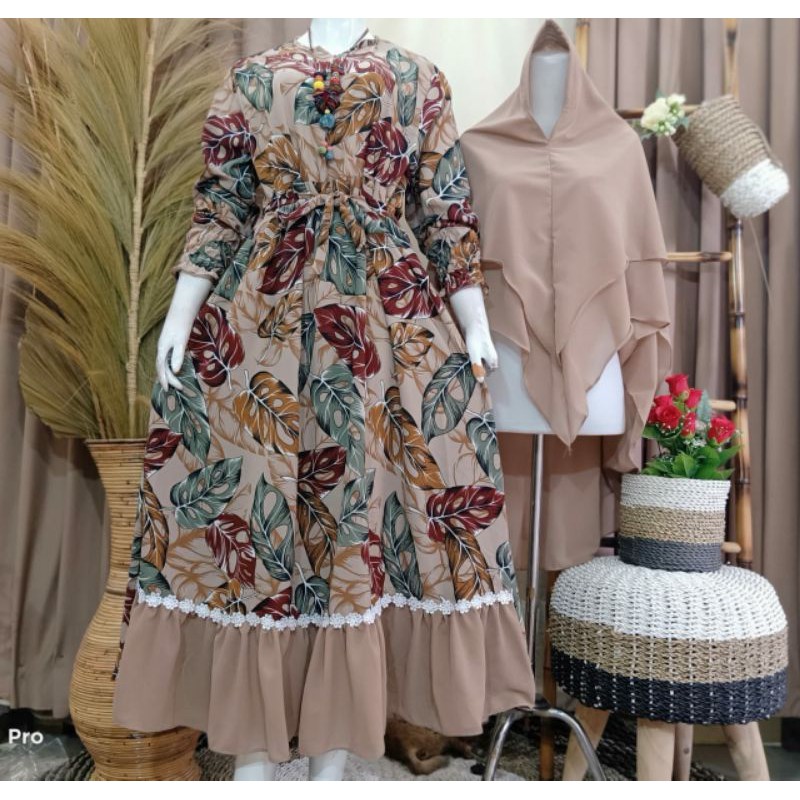 Jual Gamis Set Hijab Motif Daun Janda Bolong Kota Surabaya Five Star Nabila Tokopedia