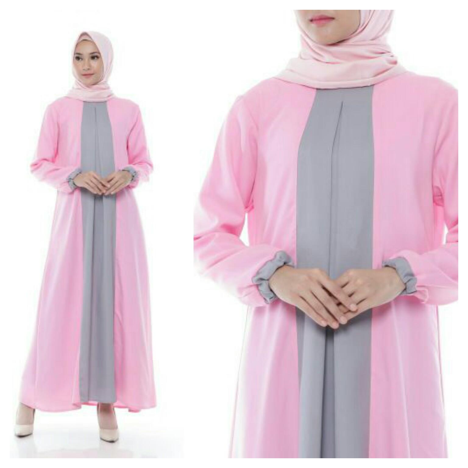Gamis Katun Polos Kombinasi Modern Simpel Dusty Pink Model Pakaian Hijab Pakaian Jelita Model Pakaian