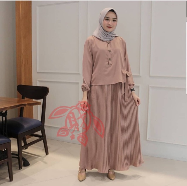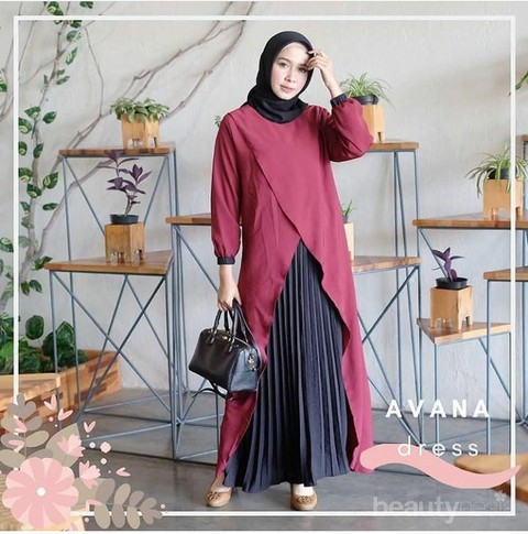 Update Model Gamis Brokat Paling Baru Plisket Kombinasi Elegan Cantikterus Com