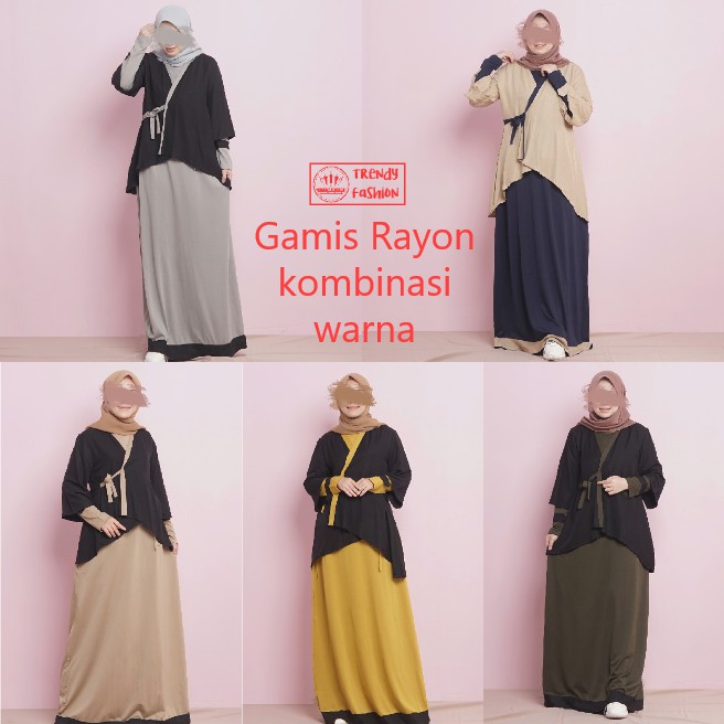 Gamis Syari Rayon Polos Kombinasi Warna Terkini Hifashion Shopee Indonesia