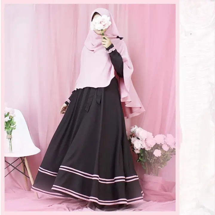 Gamis Remaja Syari Terbaru 2020 Eliza Hitam Gamissyari Net