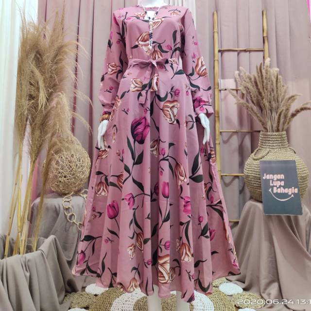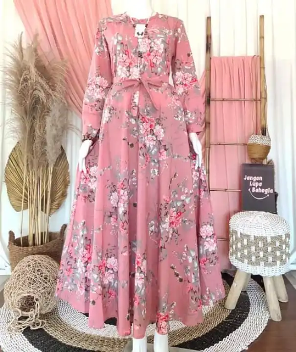 Gamis Monalisa Bangkok Klok Gamis Cantik Kekinian Gamis Monalisa Motif Bunga Lazada Indonesia