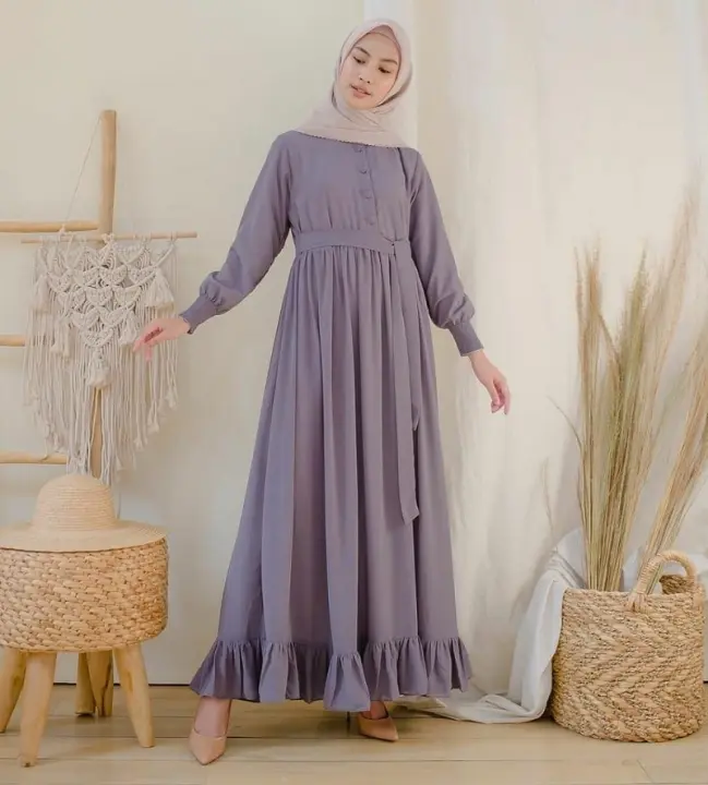 Sherrylfashion Baju Aini Dress Bhn Wollycrepe Long Dress Wanita Fashion Ootd Grosir Gamis Maxi Muslim Abaya Perempuan Muslimah Casual Kekinian Murah Modis Fashionable Promo Terbaru Modern 2020 Bandung Cod Lazada Indonesia