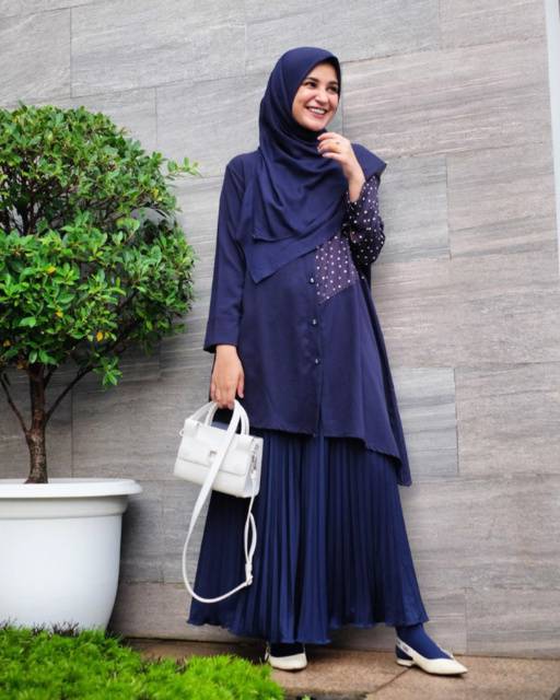 Jual Ootd Baju Gamis One Set Wanita Muslim Dewasa Kekinian Terbaru Murah 1set Ibr Navy Kota Surakarta Miftah Business Tokopedia
