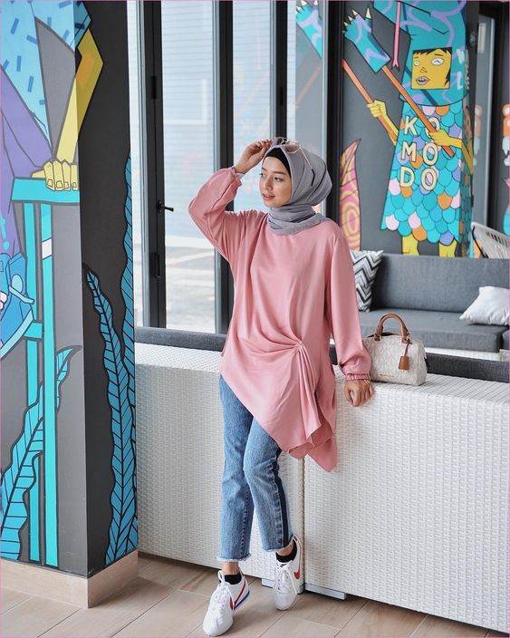 Outfit Baju Hijab Casual Untuk Perempuan Gemuk Ala Selebgram 2018 Kets Sneakers Lace Ups Flatshoes Ciput Rajut P Pakaian Wanita Model Pakaian Model Baju Wanita