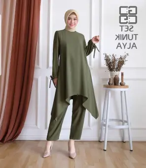 Qwfashion Ij Cod Setelan Baju Dan Celana Wanita Muslim 2020 Setelan Baju Dam Celana Ootd Hijab Set Tunik Dan Celana Tunik Set Celana Setelan Baj Dan Celana Wanita Tunik