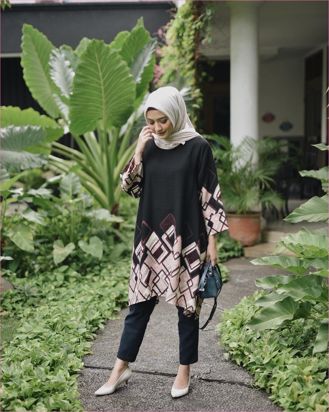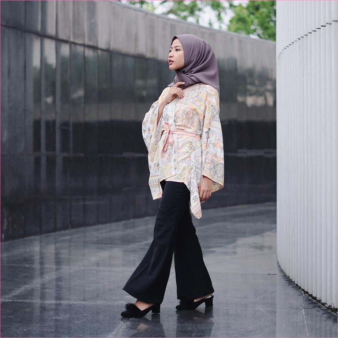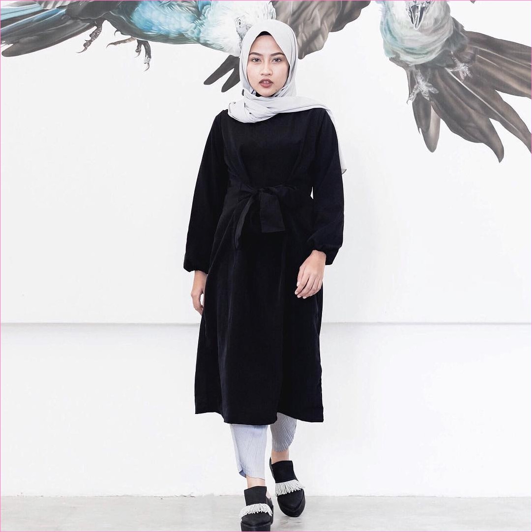 Outfit Baju Hijab Casual Untuk Perempuan Gemuk Ala Selebgram 2018 Abaya Gamis Tangan Terompet Lebar Putih Bercorak Casual Hijab Outfit Gaya Abaya Penata Busana