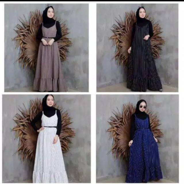 Gamis Remaja Kekinian 2in1 Inner Outer Overall Callia Stripe Set By Shofiya Shopee Indonesia