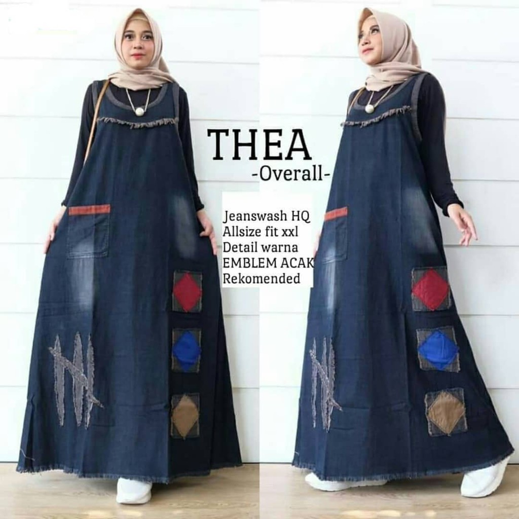 Gamis Jeans Kekinian Tambal Patch Silky Maxi Jeans Mix Babyterry Overall Denim Jumpsuit Jeans Dress Muslim Wanita Murah Dress Fashion Wanita Bukalapak Com Inkuiri Com