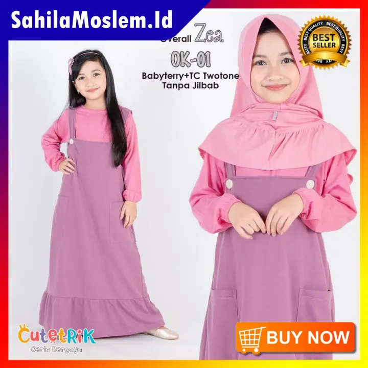 Cutetrik Overall Zea Ok 01 Pink Overall Anak Perempuan Polos Cutetrik Gamis Anak Baju Gamis Cutetrik