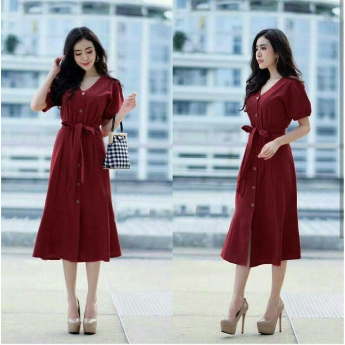 Pakaian Wanita Korea Warna Pepejal Longgar Casual Dress Dress Casual Merah Dress 0117 Ter 50vuj Shopee Indonesia