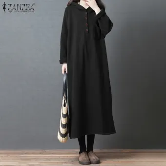 Zanzea Wanita Longgar Kasual Longgar Panjang Bertudung Sweter Longgar Gaun Bertudung Lazada Indonesia