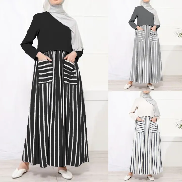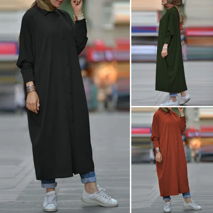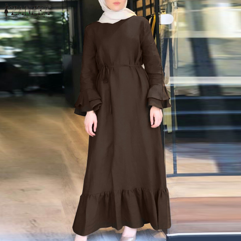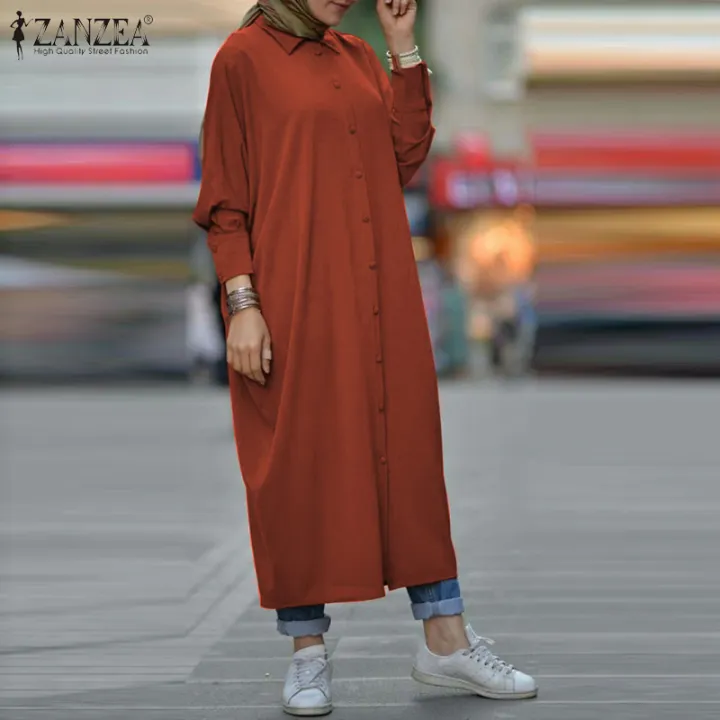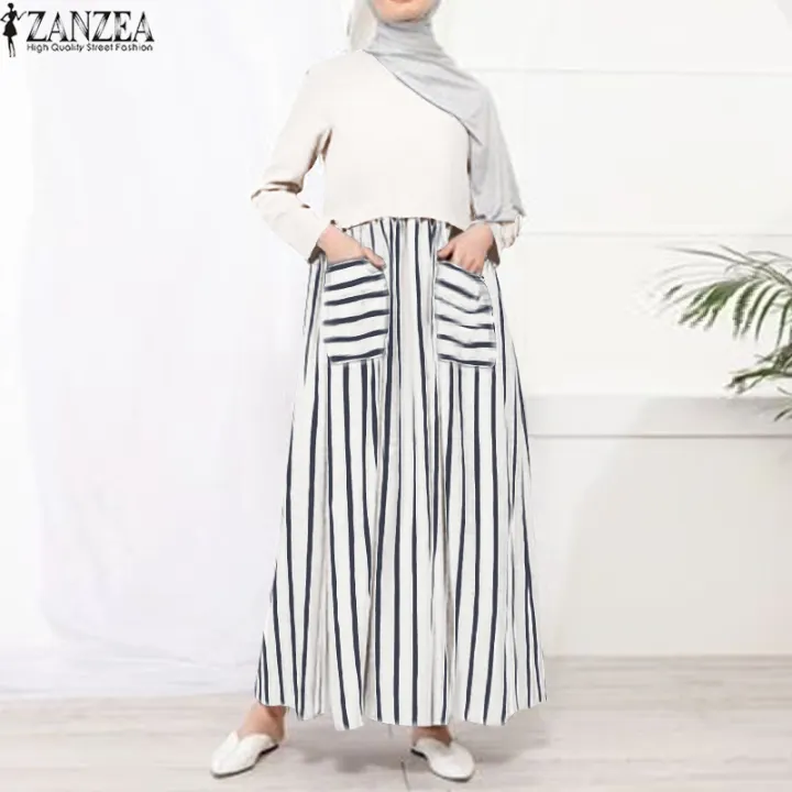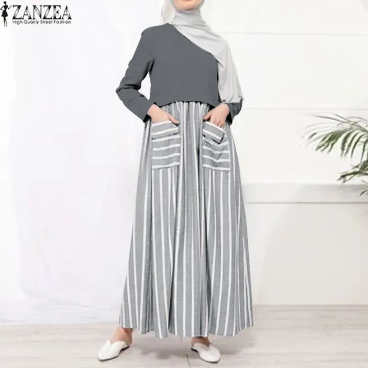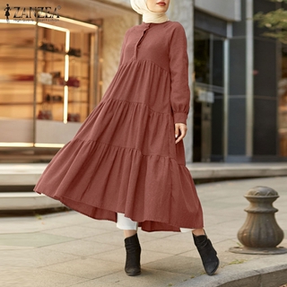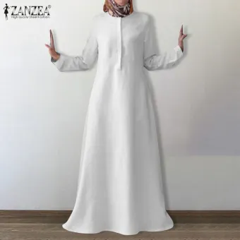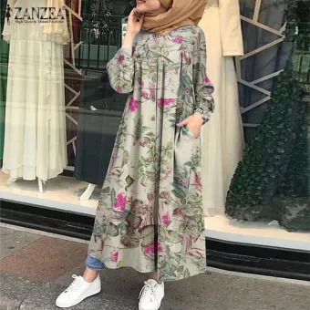 Zanzea Wanita Muslimah Wanita Musim Panjang Baju Pakaian Kasual Percutian Midi Sundress Longgar Pakaian Lama Lazada