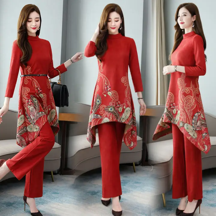 Baju Blus Lengan Panjang Retro Wanita Baju Blus Ukuran Besar Celana Kaki Lebar Gaun Lengan Panjang Baju Wanita Cheongsam Bunga Pakaian Gaya Nasional Audrey Super Cai Dua Potong Lazada Indonesia