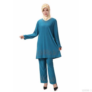 Top Leggings Jogging Seluar Wanita Wanita Muslimah Pakaian Latihan Wanita Set Baju Lengan Panjang Dan