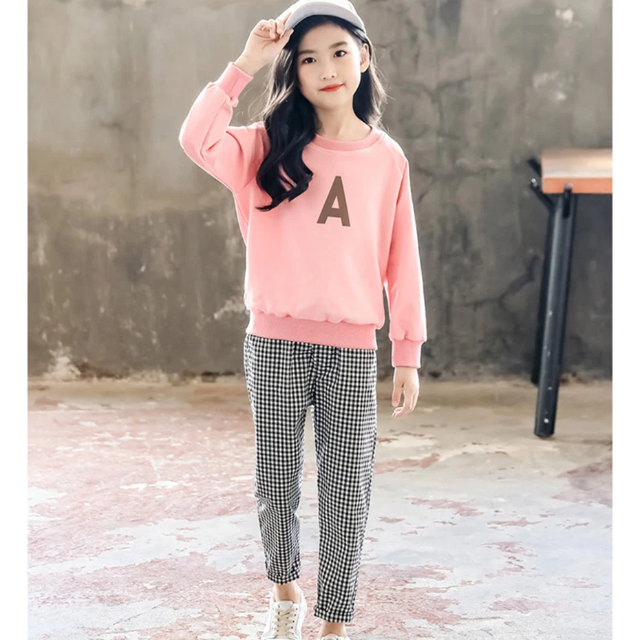 Pakaian Untuk Anak Perempuan Huruf A Sweatsuits Celana Pakaian Perempuan Celana Kotak Kotak Gadis Set Musim Dingin Gaya Kasual Baju Olahraga Untuk Anak Anak Set Pakaian Aliexpress