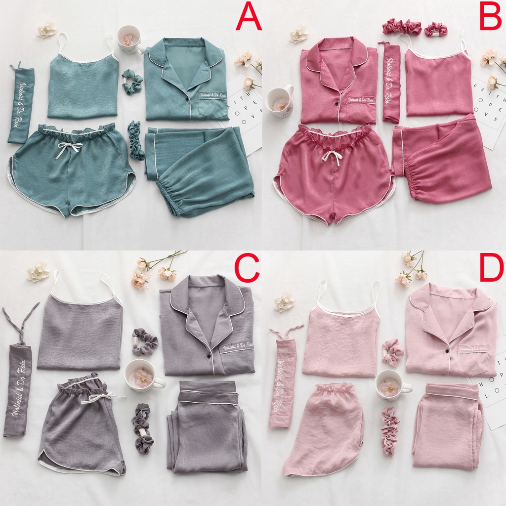 Wanita Manis 7pcs Set Piyama Es Sutra Pakaian Rumah Pakaian Tidur Piyama Setelan Baju Baju Tidur Shopee Indonesia