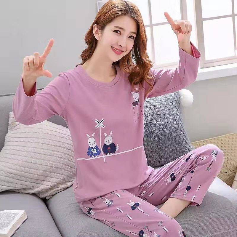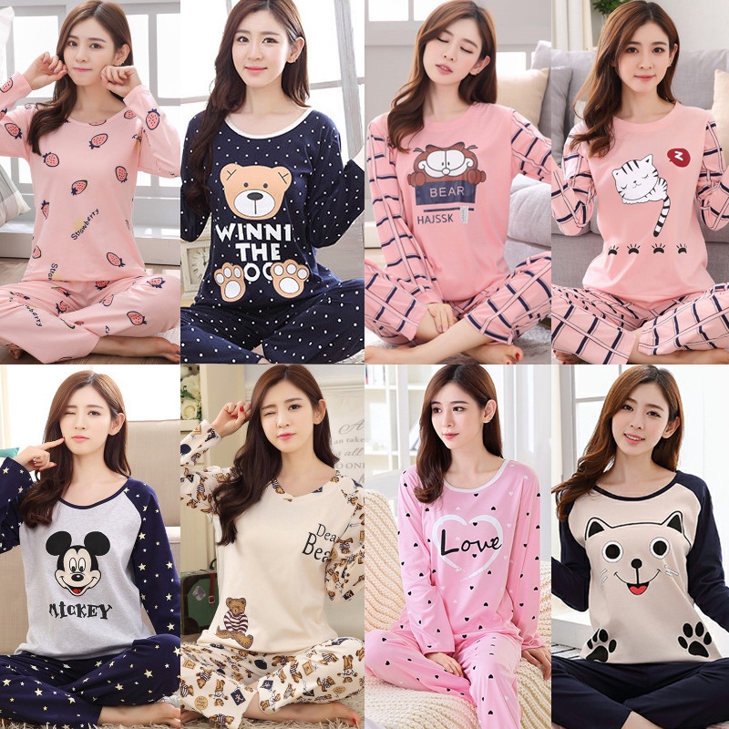 Baju Tidur Wanita Piyama Wanita Lengan Panjang Pakaian Rumah Wanita Pakaian Wanita Musim Bunga Dan Musim Gugur Korea Kartun Leher Bulat Shopee Malaysia