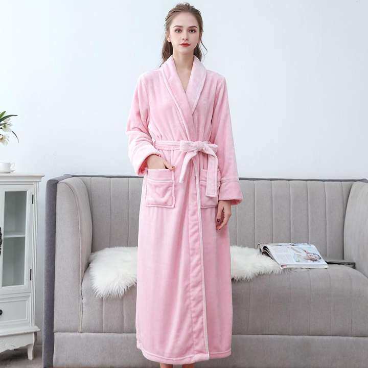 Wanita Slik Butang Nightgown Menebal Pakaian Tidur Besar 3xl Flanel Kimono Jubah Gaun Wanita Jubah Mandi