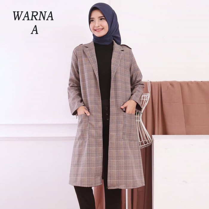Jual Terlaris Lina Long Outer Blazer Semi Formal Coat Luaran Hijab Panjang Murah Stripe Black Di Lapak Fara Shop Bukalapak