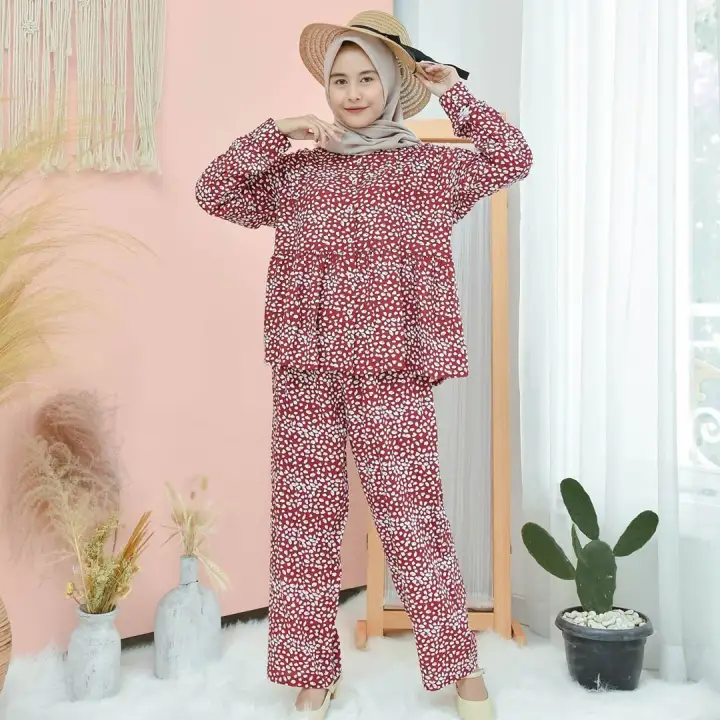 Fatimah Set Baju Wanita Terbaru Modern 2020 Baju Muslim Bahan Katun Rayon Viscose Setelan Wanita Stelan Atas Bawah Baju Tidur Piyama Set Stelan Atas Bawah